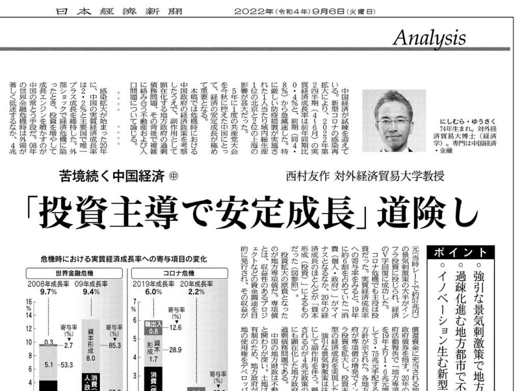 本稿では、危機時における中国政府の経済政策を考察した上で、副作用として顕在化する地方政府の過剰債務問題、その背後で複雑に絡み合う不動産および人口問題について分析しています。