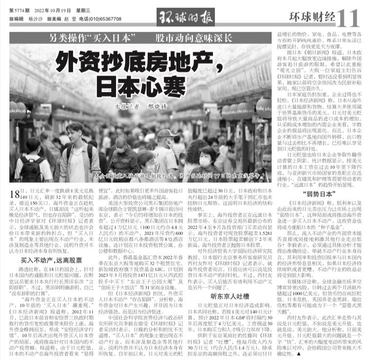 環球時報「外资抄底房地产,日本心寒」にコメントしました。